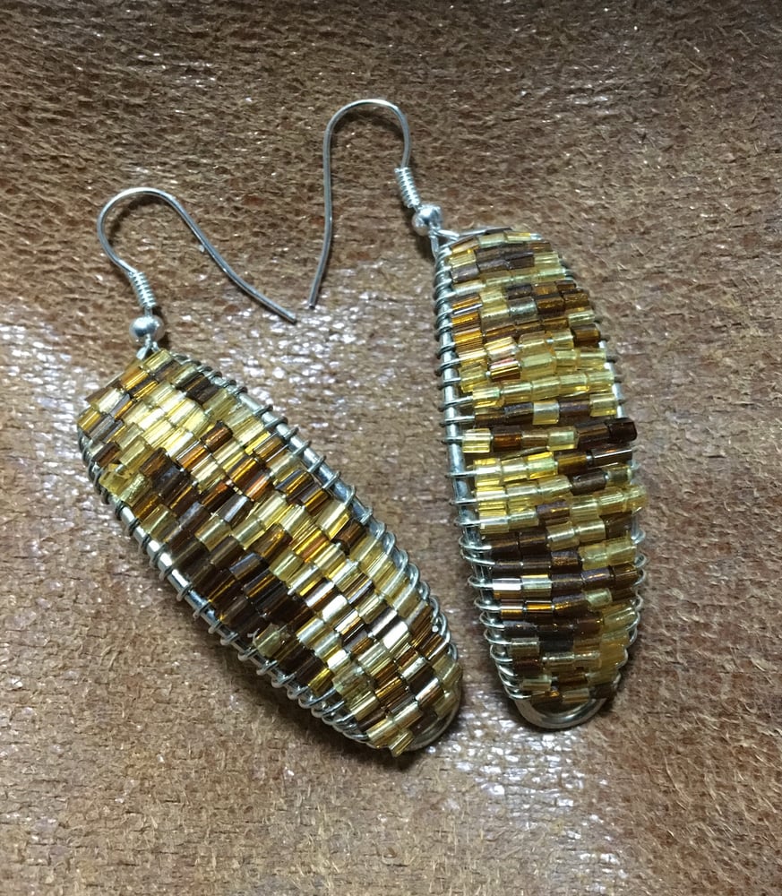 Lightweight beaded bracelet and matching earrings, on silver plated chain and earring hooks.